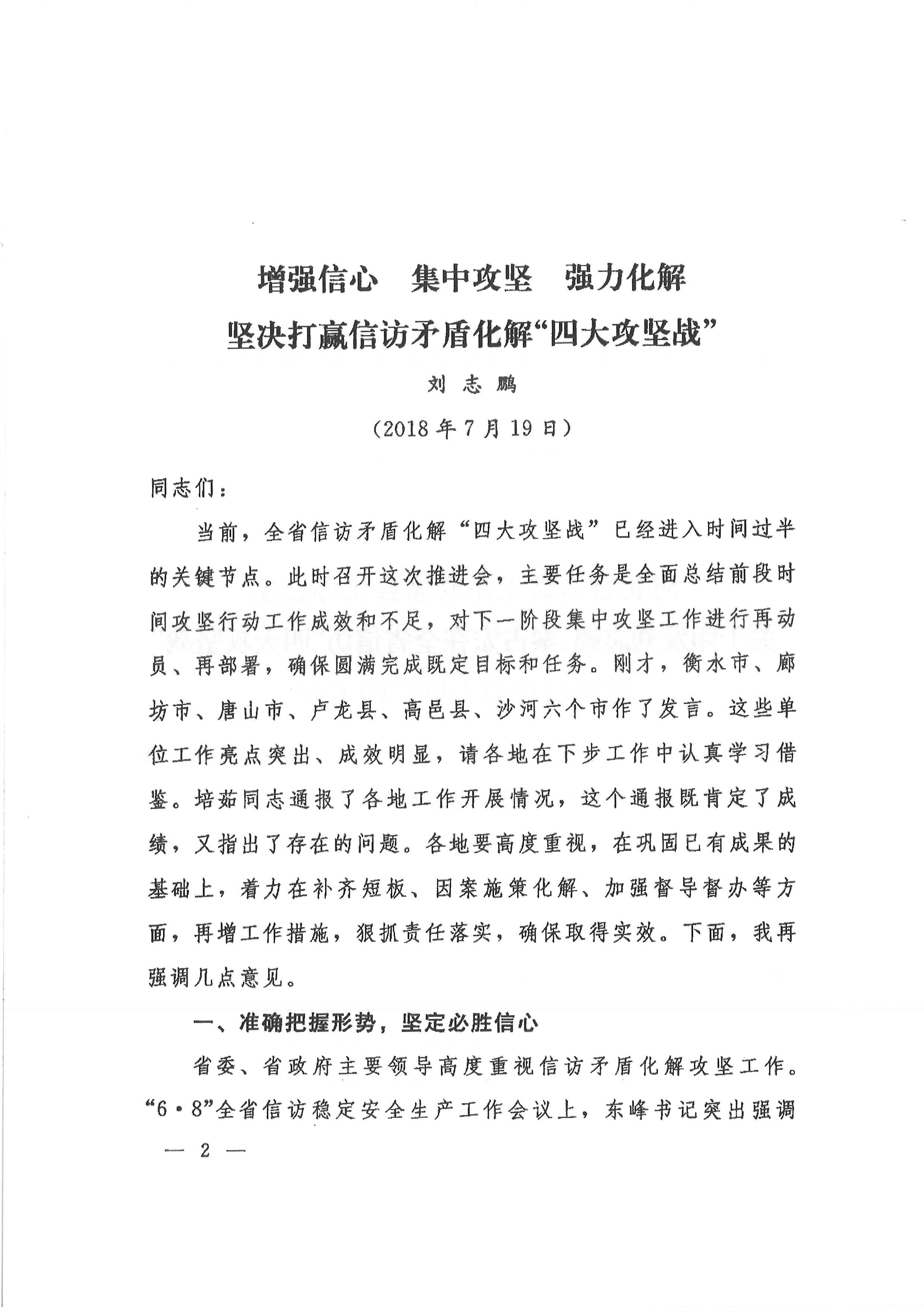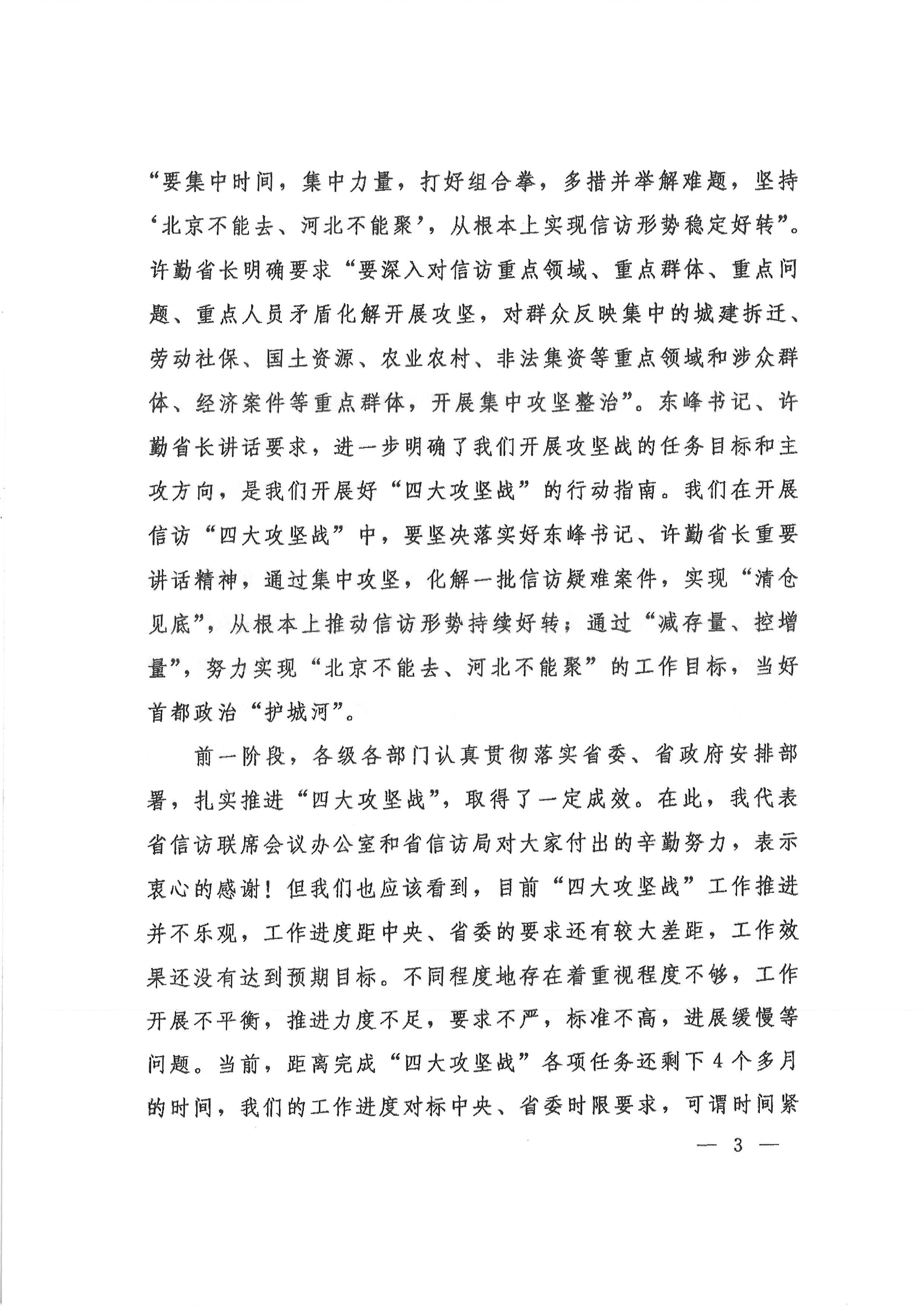 河北省信訪工作聯(lián)席會議辦公室關(guān)于印發(fā)劉志鵬、秦占宏在全省信訪“四大攻堅(jiān)戰(zhàn)”視頻推進(jìn)會上講話的通知