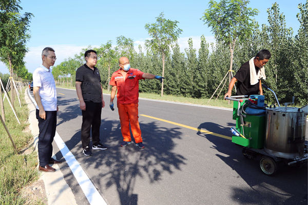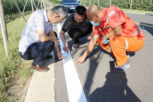 八月的初秋,天氣依然炎熱。鄭志平一行深入施工一線,實(shí)地察看標(biāo)志標(biāo)線項(xiàng)目開展情況,就工程進(jìn)度、質(zhì)量、安全生產(chǎn)等與施工負(fù)責(zé)人進(jìn)行交流。