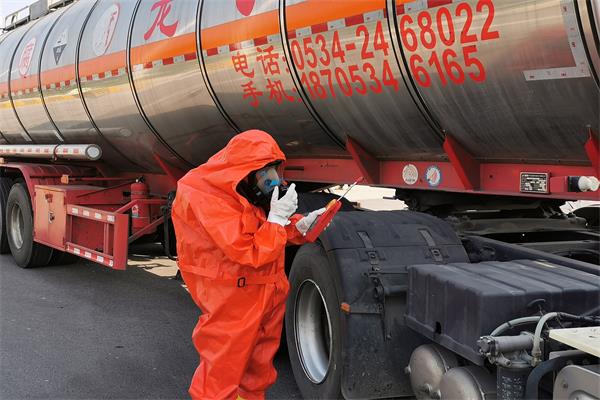 9月29日上午,衡德公司聯合路政、交警、消防、醫療衛生等部門在青蘭收費站開展了一場危化品事故應急救援演練。