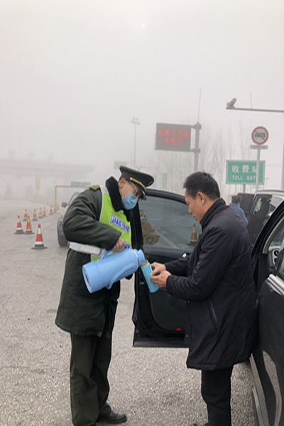 2月26日5時,受大霧天氣影響,衡水東收費站入口關閉,收費廣場滯留大量車輛。衡水東收費站一線職工積極開展延伸服務工作,為等待出行的司乘送上陣陣溫暖。