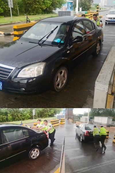 ? ? ??收費(fèi)員杜佳第一時(shí)間發(fā)現(xiàn)了這一情況,他迅速報(bào)告給班長(zhǎng)柳嘉誠(chéng),并快步跑到故障車輛旁。只見(jiàn)司機(jī)滿臉焦急,嘗試多次打火,車輛卻毫無(wú)反應(yīng)。為了盡快恢復(fù)車道暢通,避免擁堵加劇,他們二人合力將車推至安全區(qū)域,杜佳又在車輛周圍放置了反光錐,提醒過(guò)往車輛注意安全。