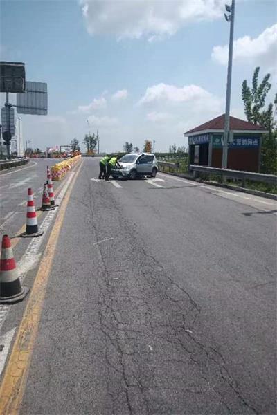 5月5日,一輛小型轎車在廟鎮收費站出口突然發生故障,車輛無法正常啟動,滯留在道路中間。當時正值出行高峰,后方車輛紛紛減速避讓,不僅嚴重影響了其他車輛的正常通行,還存在極大的安全隱患。