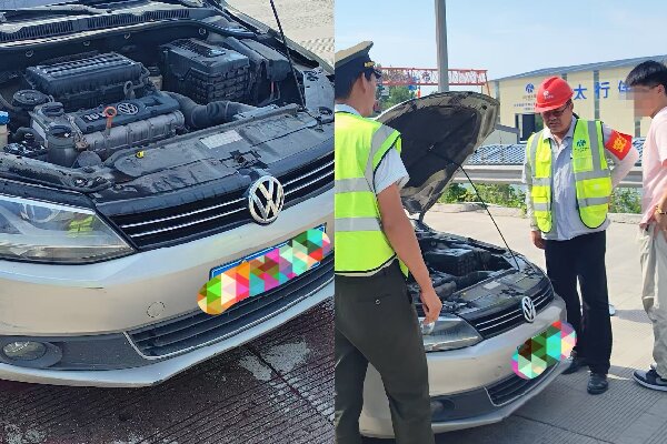 憑借豐富經驗,班長初步判斷車輛因發動機高溫導致拋錨。在確保現場人員絕對安全的前提下,他果斷組織現場人員合力將故障車輛推離危險的車道區域,轉移至安全地帶,第一時間化解了入口處重大安全隱患。
