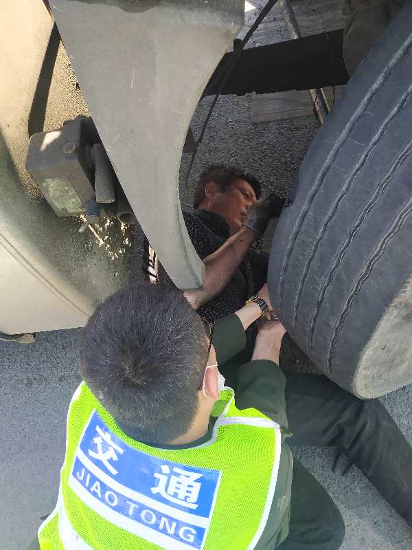 ? ? ? ?突然車流斷開,一時間車輛鳴笛不止,當班副站長房磊和疏導人員陳龍第一時間趕上前了解情況,一輛貨車停在車道中間。經詢問得知,原來貨車的轉向軸脫落,無法前行。事發緊急,房磊當機立斷,先在貨車后方擺放安全錐桶,指揮后面的車輛繞行,隨后找來修車工具幫助司機修車。經過將近20分鐘的修理,車終于修好了。臨行前,司機拉著房磊的手連連道謝,房磊也一再囑咐司機出行前一定要檢查好車況。