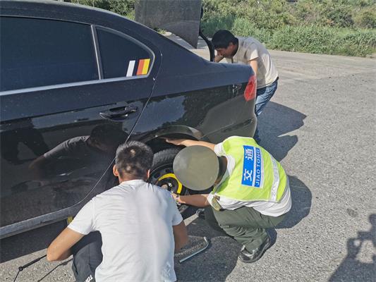 7月25日16時(shí)20分,一名身穿白色T恤的男子來(lái)到衡水東收費(fèi)崗?fù)で笾骸拔业能?chē)子爆胎了,我的修車(chē)工具不全,能不能借用你們的維修工具更換一下備胎。”得知情況后,當(dāng)班班長(zhǎng)立即拿起便民服務(wù)臺(tái)里的工具箱向事故車(chē)輛走去,當(dāng)時(shí)車(chē)輛后面沒(méi)有擺放三腳架等物品,班長(zhǎng)立即讓疏導(dǎo)員張?jiān)涝谲?chē)輛尾部擺好兩個(gè)隔離錐。對(duì)車(chē)輛進(jìn)行簡(jiǎn)單檢查后,當(dāng)班班長(zhǎng)立即取出千斤頂、套筒、撬棍、加力桿等工具幫助車(chē)主更換輪胎,經(jīng)過(guò)20分鐘的努力,車(chē)胎更換完畢,車(chē)輛恢復(fù)正常。