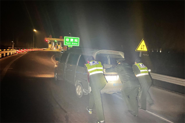 司機激動的拉著工作人員的手感謝的說到:“這大晚上的,車壞在了這么危險的地方,心里特別害怕,多虧了你們幫我把車推到安全地方,真是太感謝了”。值班站長笑著回答:“別客氣,這是我們應該做的,廟鎮收費站每個員工都會竭盡全力幫助所有司乘”。