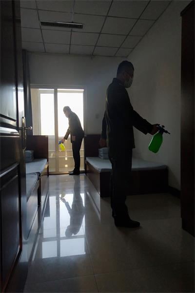 ? ? ? ?居住環(huán)境更易被各類細(xì)菌侵入相對(duì)溫暖潮濕的條件也更利于細(xì)菌的存活與生長(zhǎng)。收費(fèi)c班利用下班時(shí)間對(duì)宿舍進(jìn)行全面消毒床與墻之間的死角,衣櫥后面的盲區(qū),洗手臺(tái)下面的潮濕陰暗面都被消毒液覆蓋。 ??