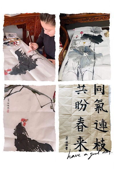 居家期間,她用書法、繪畫的形式,筆墨寄情,以“藝”抗疫,用畫筆傳遞力量,用一幅幅強信心、暖人心的書畫作品,為抗疫助力!