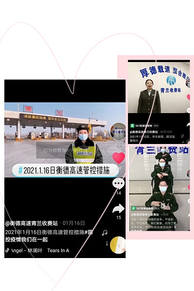 在這個信息發達的時代,網絡的便捷使得其超越了所有的傳統渠道,成為我們了解外部信息最快捷的途徑。1月初,青蘭收費站站領導班子采納她的建議,決定成立“衡德高速青蘭收費站”抖音賬號。為了提高社會關注度,她冒著零下十九度的嚴寒,站在收費外廣場,解說站口路況信息;組織站內職工業余時間,用簡單的舞蹈給過往司乘送上歡樂;和高速交警、防疫部門反復溝通,總結站口防疫管控措施。短短幾天內,視頻累計總播放量5.5萬次。