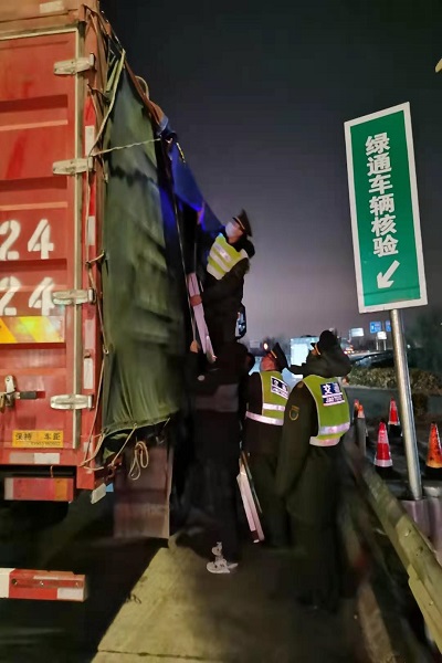 大風下幫助司機捆篷布