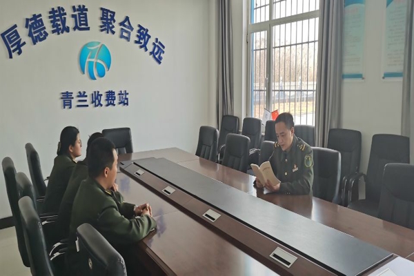 青蘭收費(fèi)站A班班組自主管理之黨員班長帶領(lǐng)班組人員學(xué)習(xí)黨史