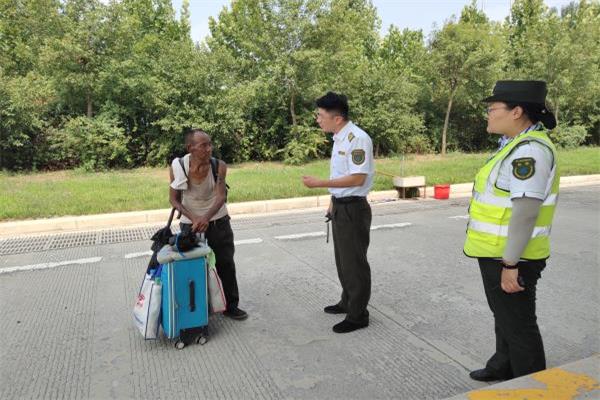 7月16日,鄭口收費站收費B班正在進行崗上作業,疏導員崔曉兵在外疏導時發現一位老人拖著行李向收費站走來,她趕忙跑上前去詢問。經詢問,得知老人是從山西過來探親,途經此地路況不熟迷失方向,只能向收費站求助。了解情況后崔曉兵立刻找來地圖幫助老人查找目的地,見老人年事以高,路程又較遠,需要乘坐公交車,趕忙向站長請示是否可以派車送老人到附近的車站。得到肯定答復后,老人激動流下了眼淚,“太謝謝你們了,你們幫我查地圖,這就挺麻煩你們了,不能再麻煩你們送我去車站,我心里過意不去啊!”在老人的婉拒和道謝聲中,他的身影漸漸遠離了收費站。