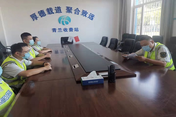 針對國慶期間車流量較大,為避免壓車情況,青蘭收費站收費D班利用下班之余,由班長組織召開了一次國慶期間保暢的會議部署。