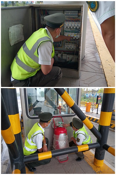 排查中,班組人員對收費車道、宿舍、變電箱等地進行了仔細檢查,并重點查看了消防設施是否完好、消防安全出口是否暢通等。同時,對電線、電路的安全情況進行了排查,對常用的電器設備進行了檢修。