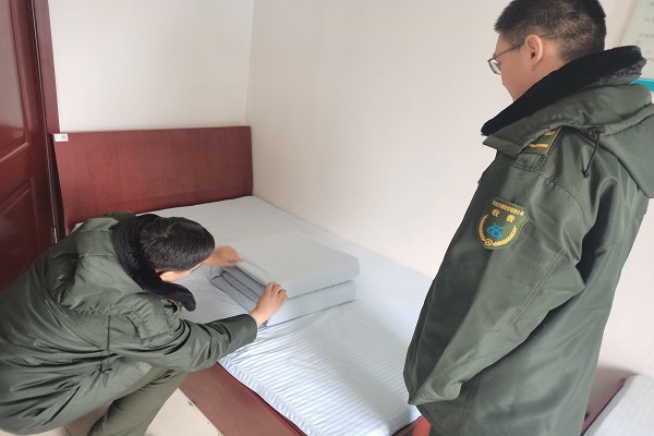 一是對標兵宿舍進行參觀,從床鋪、被子、物品擺放、室內氣味及衛生情況進行對比,從而找出各自宿舍的不足之處,并由當班標兵逐個對員工宿舍進行疊被現場指導教學。
