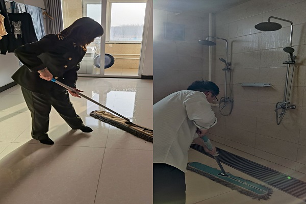 班組成員分工明確,密切配合,將衛(wèi)生間、浴室等公共區(qū)域的衛(wèi)生打掃一新,清潔的過(guò)程中,使職工們既調(diào)節(jié)了身心,也加強(qiáng)了工作熱情,給同事們提供了一個(gè)整潔舒適的工作環(huán)境。