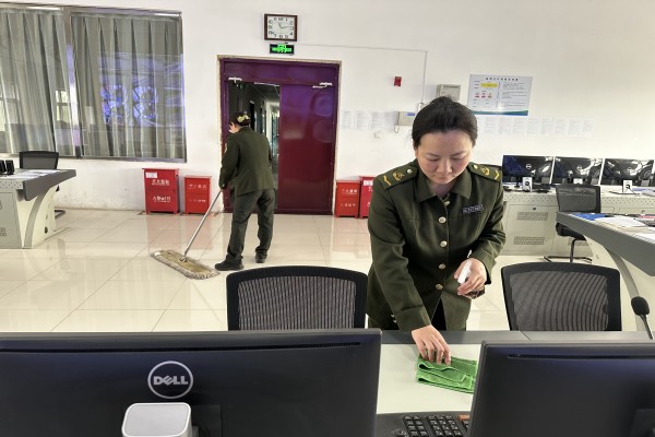 二是以實際行動營造良好辦公環(huán)境。中心人員兩人為一組,劃分衛(wèi)生區(qū),通過清理監(jiān)控室衛(wèi)生死角、擦拭監(jiān)控室電腦、桌椅、門窗玻璃,保證做到墻面整潔無塵,規(guī)律有序擺放物品,電源開關(guān)、座椅扶手無污垢。