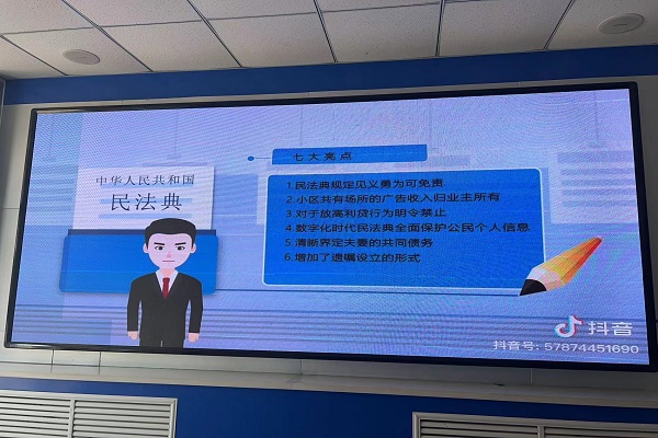 二是多形式開展民法典學習宣傳。通過站區(qū)大屏幕循環(huán)播放民法典相關資料,組織職工觀看有關視頻,學習法律知識,提升個人法律意識,抓好落實員工對民法典的學習,讓民法典走到職工身邊、走進職工心里。