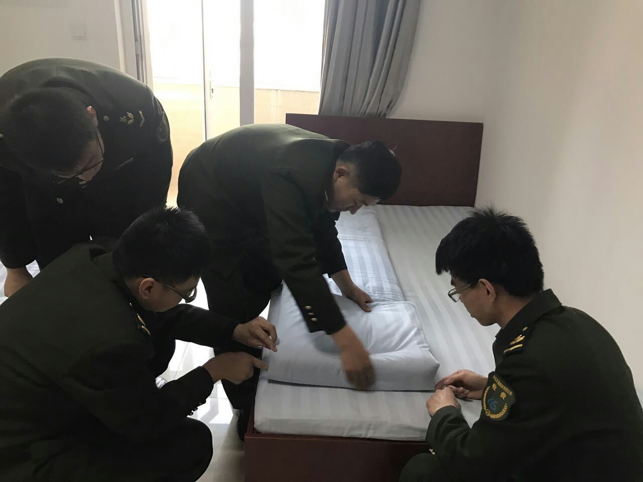 部隊里講,被子是“三分疊,七分整”也就是說,被子的好壞主要是修整,我將被子拆開,逐一示范,手把手去教給大家怎樣折疊,怎樣對齊,怎樣捋。要求大家把平時認為整不好的地方提出來,并對其進行一一講解。