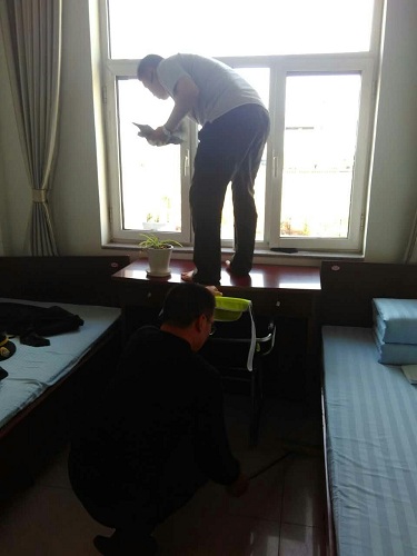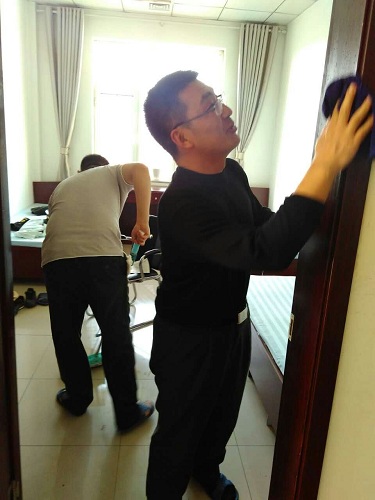 放置了很久的床底下,灰塵很多,我們先將床挪開,將地下角落里的灰塵打掃干凈,衣柜上面打掃不到、高的地方、死角徹底清掃,門框高處、門面用濕布擦干凈后再用干布擦一遍,防止留下水漬印,窗戶先是用濕布擦,最后用報紙再擦一遍,這樣擦出來的玻璃既干凈又明亮。