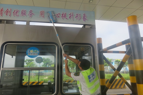 此次活動目的是對被雨水侵襲后的收費作業(yè)區(qū)域進行一次大掃除、大清理。所有人員一起行動起來,各類工具一齊上陣。水印是他們的敵人,泥土是他們的敵人,高溫是他們的敵人,戰(zhàn)斗一經打響就進入白熱化。經過近兩個小時的奮戰(zhàn),收費崗亭煥然一新,機電設備光亮照人。