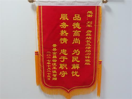 于是值班站長召集當班人員與司機一同將貨車推出車道,靠向安全停車帶。為了幫助司機盡快解決問題,經值班站長同意,當班人員拿上空桶迅速從單位開車同司機前往附近最近的加油處打油,回來時天色已暗,還好一切順利,司機將帶回來的油加上后,心情無比激動,連忙感謝后離開,值班站長和當班人員看到司機順利離開,臉上露出了欣慰的笑容。本以為事情已圓滿結束,28日下午,司機送來一面錦旗,將感恩之心寄托于此!
