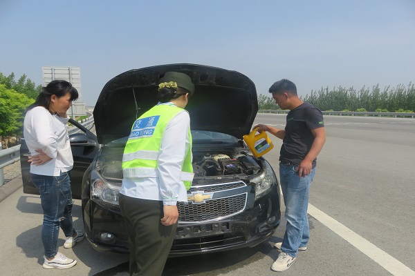 原來車輛水箱發(fā)生故障,導(dǎo)致車輛水溫過高無法正常行駛。王志怡立即引導(dǎo)車輛駛出收費站,指引司機將車輛停放在安全地帶后,帶領(lǐng)車上人員接來一桶水注入水箱,待水溫恢復(fù)正常后目送司機安全離去。