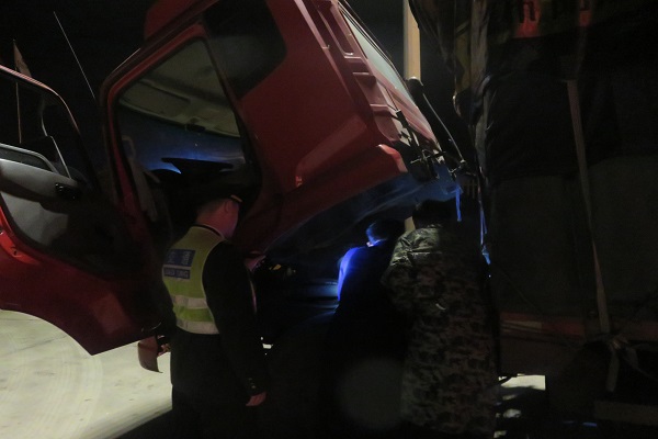 6月21日凌晨一點,一輛車牌為魯Q牌照的貨車,因車輛故障滯留青蘭收費站內廣場,司乘人員一邊尋找故障原因,一邊向當班人員尋求幫助。