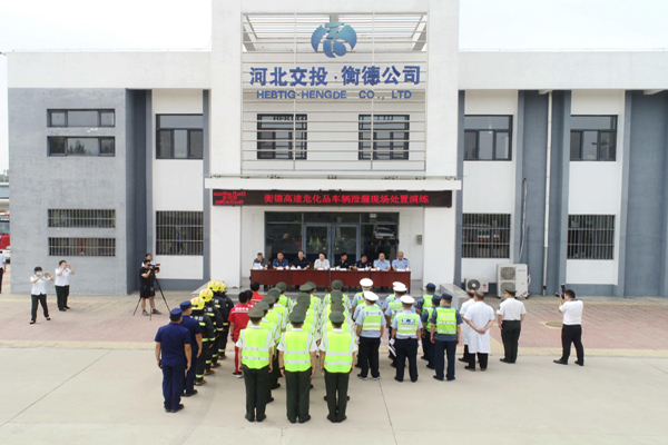 為扎實推進“安全生產月”活動,進一步強化衡德公司應對突發事故的應急處置能力,6月16日,衡德公司聯合地方政府和路政、交警、消防、醫療衛生等部門,在廟鎮收費站開展危化品車輛泄漏應急處置演練。