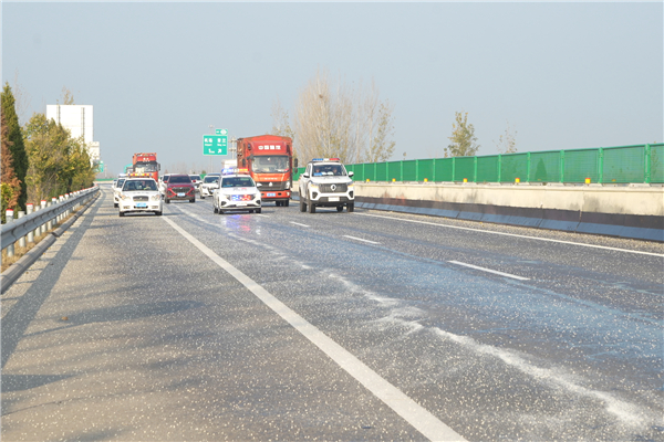 下午14時30分,全體參演人員在青蘭養護工區院內集合,陳亮總指揮做演練前動員致辭。“除雪應急演練開始!”隨著一聲令下,各單位人員隨即進入指定位置,按規定程序開始演練。本次演練模擬衡德高速故城支線域內突發雪情。隨即按照除雪保暢應急預案的預警要求啟動預案,聯系交警、路政部門和青蘭養護工區聯合對“降雪”區域展開除雪作業,參演人員按演練流程各就各位,全部車輛按既定順序前往現場,青蘭收費站負責搶險車隊在收費站口快速通行,車隊駛入衡德高速故城支線后,除雪車開始撒布融雪劑,撒布過程中交警、路政車輛對除雪車隊進行安全預警,保證除雪作業安全。作業完成后,車輛全部有序返回工區。整個演練過程,各部門參演人員各司其職、反應迅速、配合默契,圓滿完成演練任務。