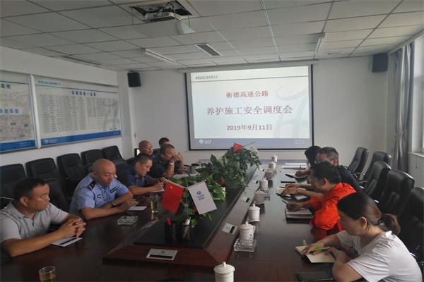 2019911日,衡德公司組織路政、交警及各養護施工單位召開養護施工安全調度會。