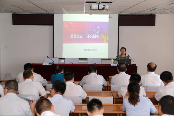 講座邀請了衡水學(xué)院馬克思主義學(xué)院吳春然副教授作專題輔導(dǎo)。吳春然以“重溫黨史、不忘初心”為題,以黨的歷史上的重要會議為主線,從“開天辟地大事件—中國共產(chǎn)黨成立”“中國共產(chǎn)黨在革命斗爭中不斷成長壯大”“新中國成立以來中國共產(chǎn)黨在自我革新中發(fā)展”3個方面作了詳細(xì)解讀。